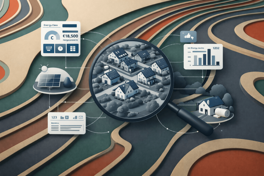 Activate the Verduurzamen ecosystem with high-resolution insights by postcode and house number. Deliver standardized verduurzamen reports and distribute them to stakeholders via API. Enable faster, more consistent label-sprong estimations—end to end.